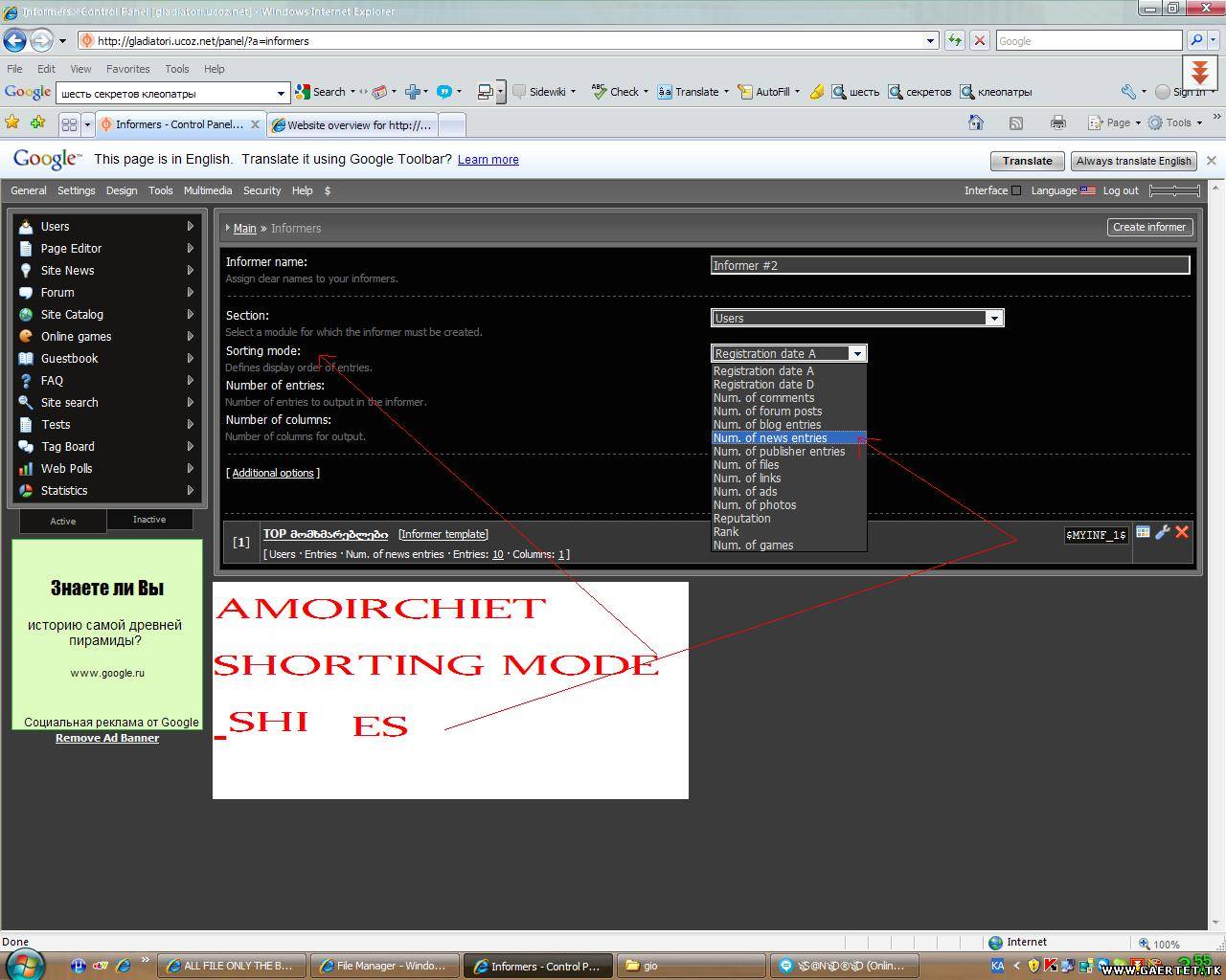 | ფორუმი uCoz System Management & Tuning Scripts Archive პოპულარული მომხმარებლები (ამით თქვენ ისწავლით როგორ გააკეთოთ პოპულარული მომხმარებლები) |