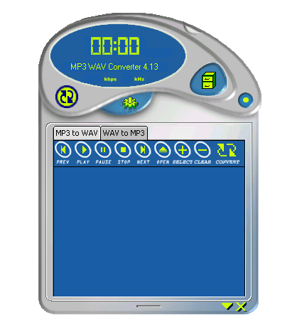 პროგრამის შესახებ დასახელება : MP3 to WAV Converter 4.13 ვერსია 4.13 წელი : 2010 ენა : ინგლისური კრეკი : მოყვება