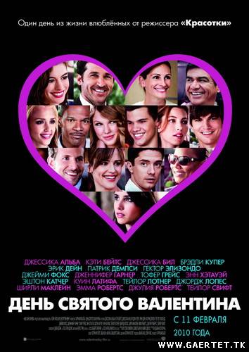 სათაური: წმინდა ვალენტინის დღე / Valentine's Day გამოშვების წელი: 2010 ქვეყანა: აშშ, Karz Entertainment ჟანრი: კომედია, მელოდრამა ხანგძლივობა: 01:52:27 გახმოვანება: პროფესიონალური (დუბლირებული)