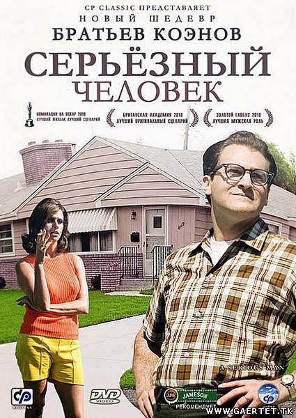 ინფორმაცია ფილმზე: დასახელება: სერიოზული ადამიანი გამოშვების წელი: 2009 ჟანრი: კომედია, დრამა რეჟისორი: იტენ კოენი, ჯოელ კოენი როლებში: მაიკლ სტალბერგი, რიჩარდ კაინდი, ფრედ მელამედი, სარი ლენიკი, აარონ ვულფი, ჯესიკა მაკმანუსი, პიტერ ბრეიტმაიერი...