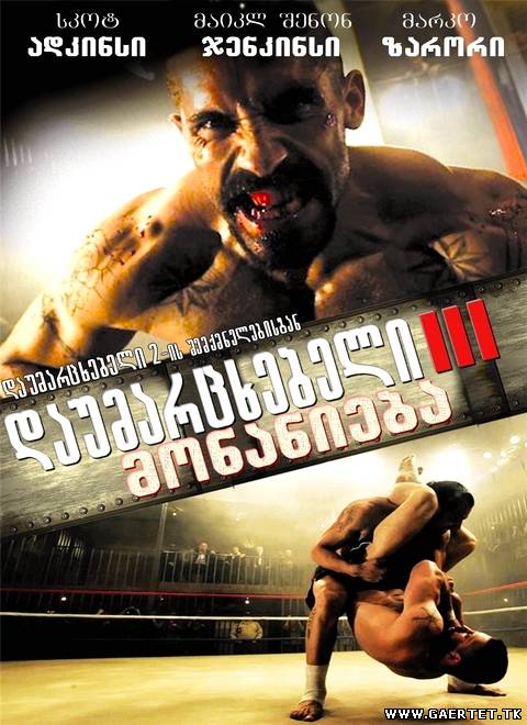 ინფორმაცია ფილმზე: დასახელება: დაუმარცხებელი III: მონანიება გამოსვლის წელი: 2010 ჟანრი: ბოევიკი რეჟისორი: აიზეკ ფლორენტაინი როლებში: სკოტ ედკინსი, მაიკლ შენონ ჯენკისი, მარკ ივანირი, ხრისტო შოპოვი, მარკო ზარორი, მაიკლს ბარალი, ილრამ ჩოი, რობერტ კოსტანცო, ლატიფ კროუდერი